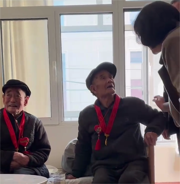 首先来到了一位爷爷的面前,爷爷今年已经80多岁了,精神矍铄。康总陪他聊了一会儿天,询问了他的生活状况和身体情况。聆听他们讲述过去的故事,那些战火纷飞的岁月,那些艰苦卓绝的斗争,在老人们的口中变得生动而鲜活,现在的美好生活都是很多前辈用生命换来的,鼓励我们要珍惜当下,好好工作和生活。爷爷告诉我们,虽然这里的生活比较单调,但有同龄人的陪伴和工作人员的关心,他感到很满足。